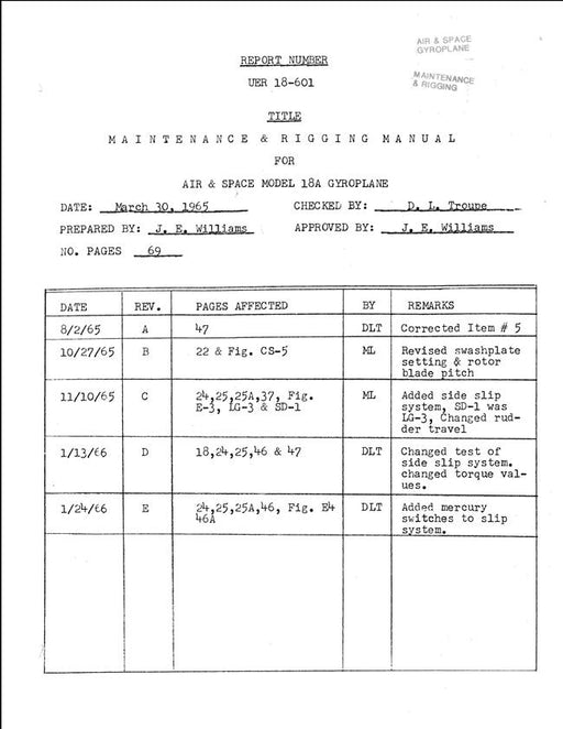 Air & Space30 March 1965 Report No. UER 18-601 Model 18A Gyroplane Maintenance & Rigging Manual