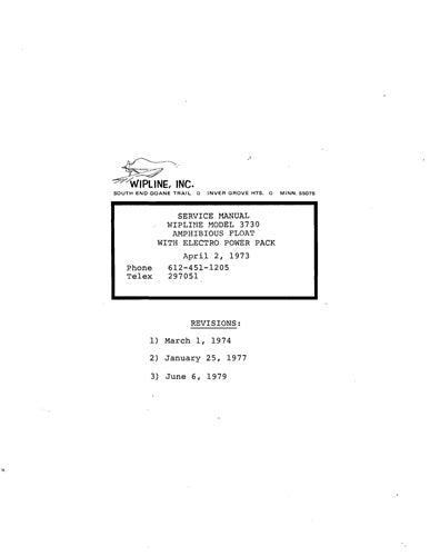 Sale $17.00| /Wipline Model 3730 Amphibious Float Service Manual 1973 (WI3730-S-C) (WI3730-M-C)