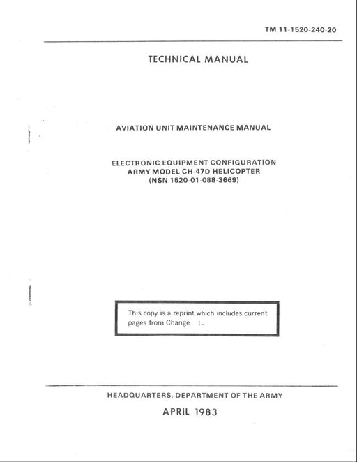 $86.00| /Army Model CH-47D Helicopter Electronic Equipment Configuration Aviation Unit Maintenance Manual (TM 11-1520-240-20)