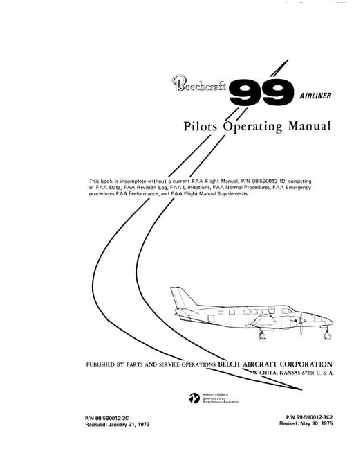 $44.00| /Beech 99 Airliner Pilot's Operating Manual (99-590012-3C)