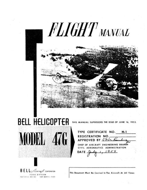 Sale $17.00| /Bell Helicopter 47G-2 Pre-Flight Pilot's Checklist Pre-Flight Pilot's Checklist