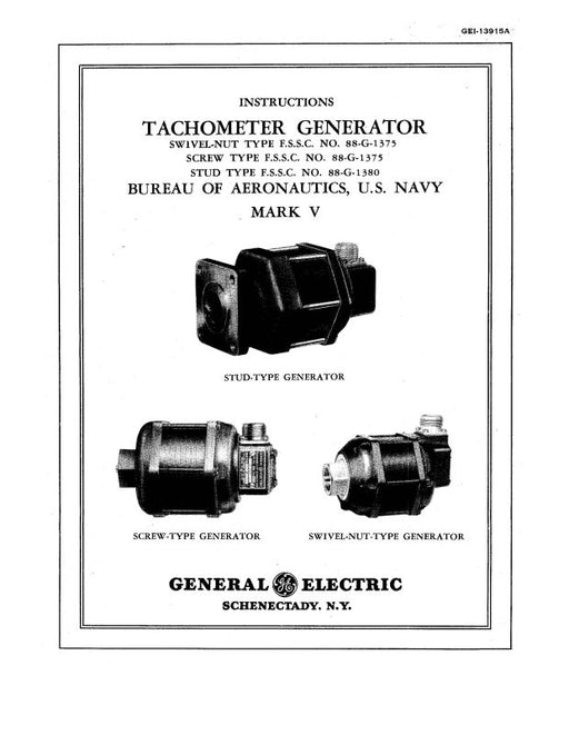 $12.00| /General Electric Company Tachometer Generator Instructions (GEI-13915A)