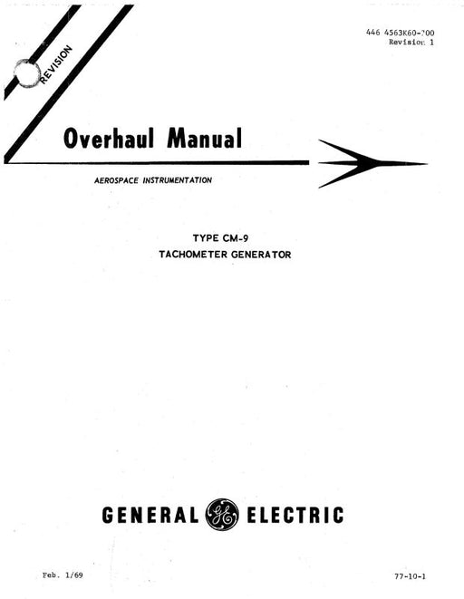 $35.00| /General Electric Company Tachometer Generator Type CM-9 Overhaul Manual (446-4563K60-700)
