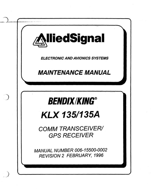 Bendix-KingKLX 135/135A Comm Transceiver/GPS Receiver Manual Number 006-15500-0002 Revision 2 Feb 1996 Contains: Theory of Operation, Maintenance, Illustrated...