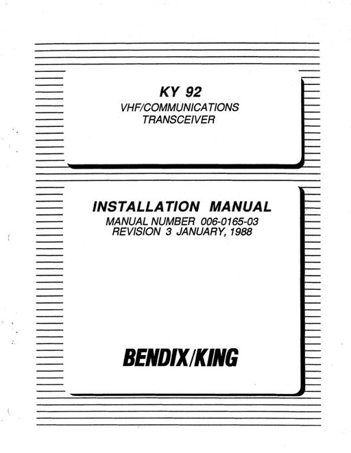 Sale $21.00| /Bendix-King KY96A-97A 1989 Installation Manual (006-00674-0001)