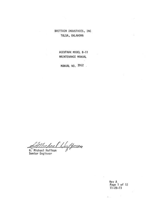 $14.00| /Brittain Industries Accutrak Model B-11 1973 Maintenance Manual (3962)