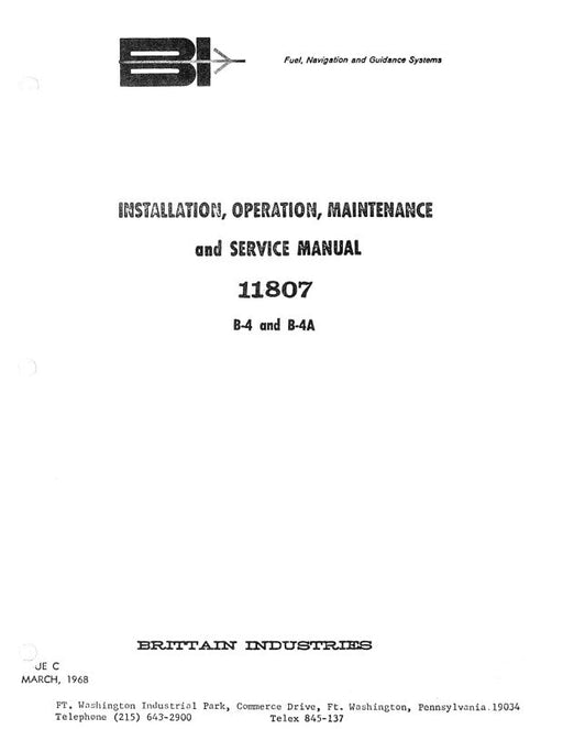 $40.00| /Brittain Industries B-4 & B-4A 1968 Maintenance, Installation, Operation (11807)