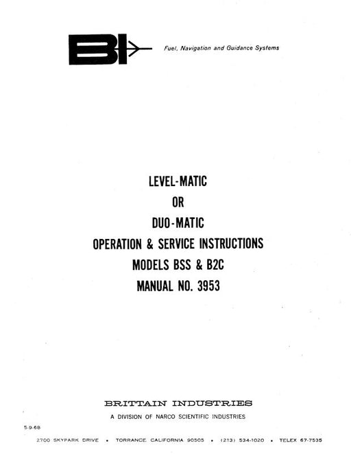 $12.00| /Brittain Industries BSS & B2CLevel-Matic-Duo-Matic Maintenance, Operation (3953)