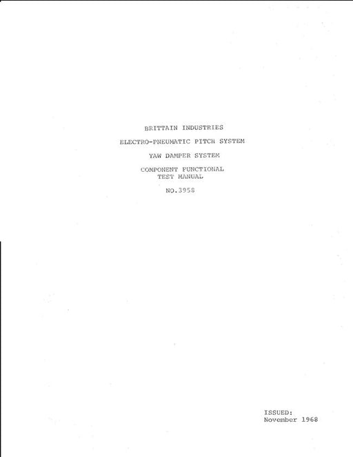 $23.00| /Brittain Industries Electro-Pneumatic Pitch System Yaw Damper System Component Functional Test Manual (No. 3958)