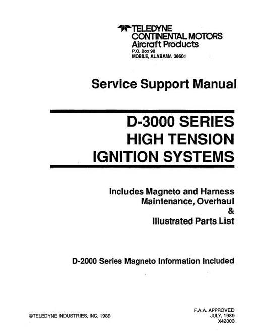 $21.00| /Continental D-3000 Series 1989 Magneto & Harness Maintenance, Overhaul, Parts (X42003)