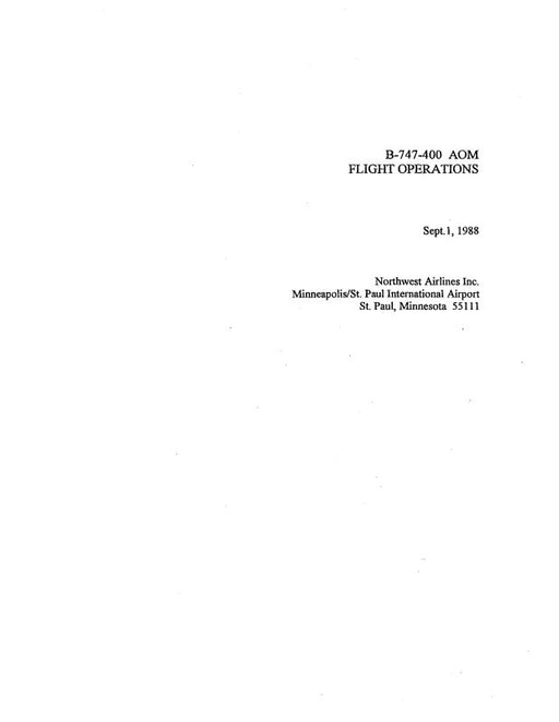 $81.00| /Northwest Airlines B-747-400 AOM & COM Flight Manual (Northwest Airlines)