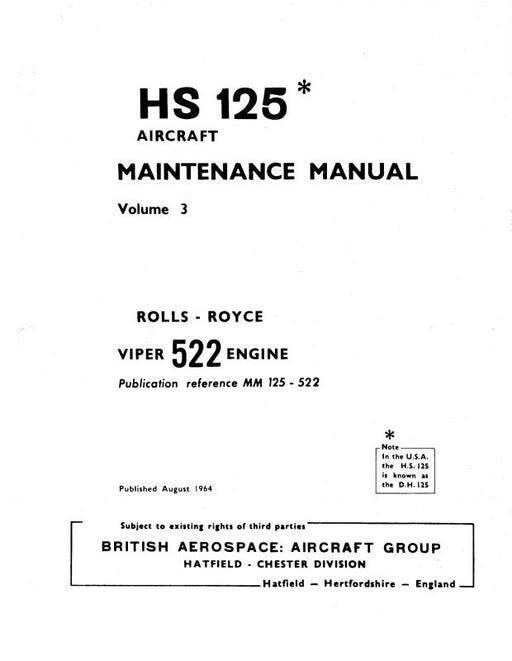 Sale $920.00| /DeHavilland DH125 Series 3A,3A-R&3A-RA Maintenance Manual (DEDH125-79-M-C)
