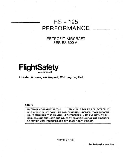 Sale $52.00| /DeHavilland HS125 1A-400A Performance Manual (DEHS125--PERC)