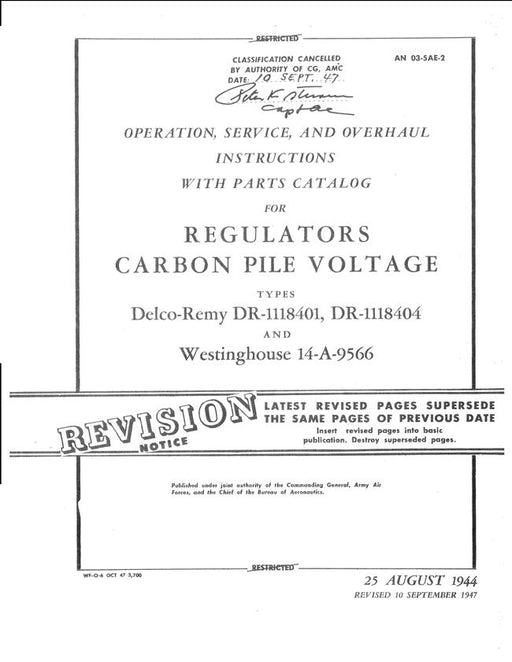 Delco-Remy/Westinghouse10 September 1947 AN 03-5AE-2 Types Delco-Remy DR-1118401, DR-1118404, Westinghouse 14-A-9566