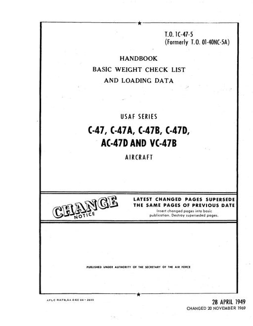 $23.00| /Douglas C-47,A,B,D,AC-47D, VC-47B Basic Weight Checklist & Loading Data (TO-1C-47-5)