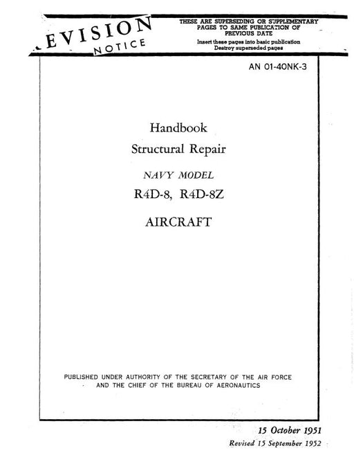 $61.00| /Douglas R4D-8, R4D-8Z 1951 Navy Model Structural Repair (01-40NK-3)