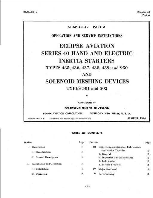 $12.00| /Eclipse-Pioneer Series 40 Hand & Electric Inertia Starters & Solenoid Meshing Devices Overhaul Instructions