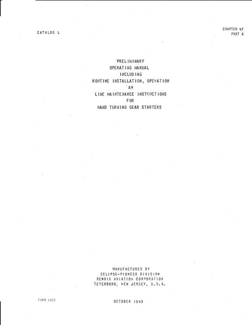 $12.00| /Eclipse-Pioneer Series 6 and 11 Hand & Electric Inertia Starters Preliminary Overhaul Manual