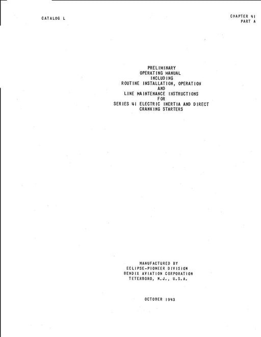 $12.00| /Eclipse-Pioneer Series 41 Electric Inertia & Direct Cranking Starters Preliminary Overhaul Manual
