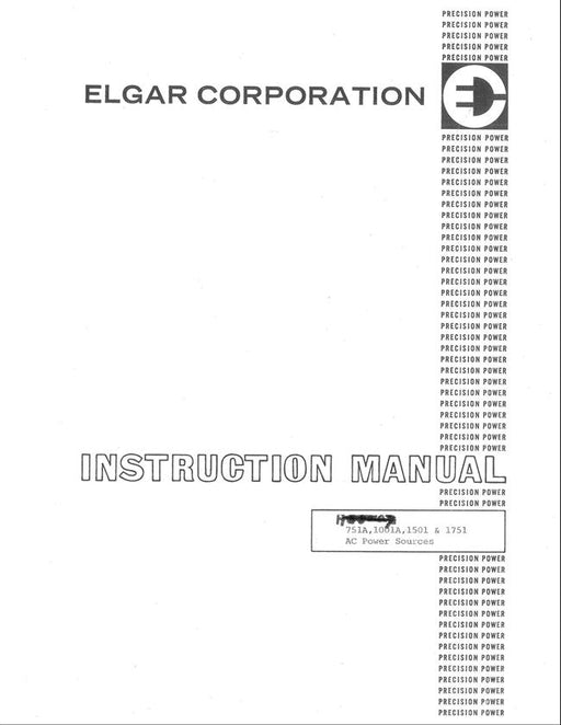 $35.00| /Elgar Corporation 751A, 1001A, 1501, 1751 AC Power Sources Instruction Manual