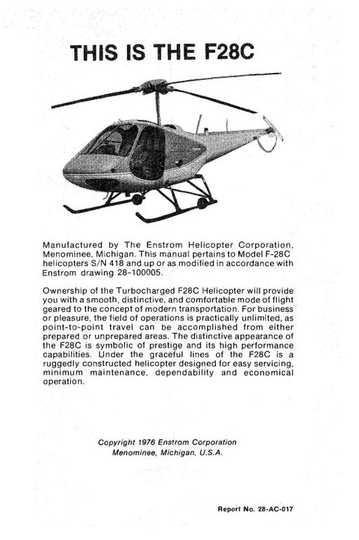 $43.00| /Enstrom 280FXHelicopter 1985 Operators Manual & Approved Flight Manual (28-AC-020)