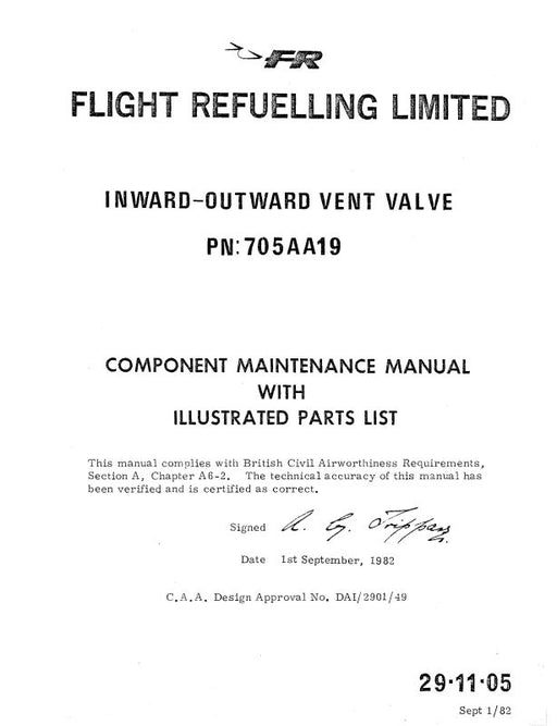 $21.00| /Flight Refueling Limited Inward-Outward Vent Valve Component Maintenance Manual With Illustrated Parts 1982 (29-11-05)