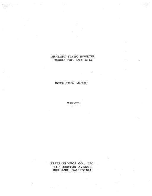$29.00| /Flite-Tronics, Inc. PC14, PC14A Static Inverter Instruction Manual 1965 (TSO C73)