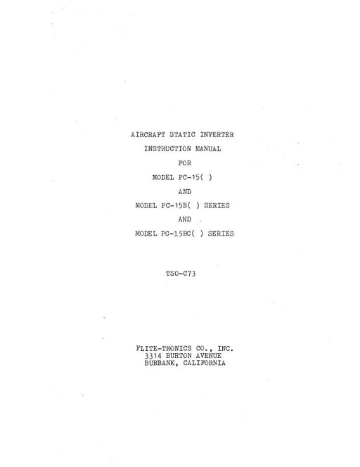 $40.00| /Flite-Tronics, Inc. PC-15, PC-15B, PC-15BC Static Inverter Instruction Manual 1966 (TSO C73)