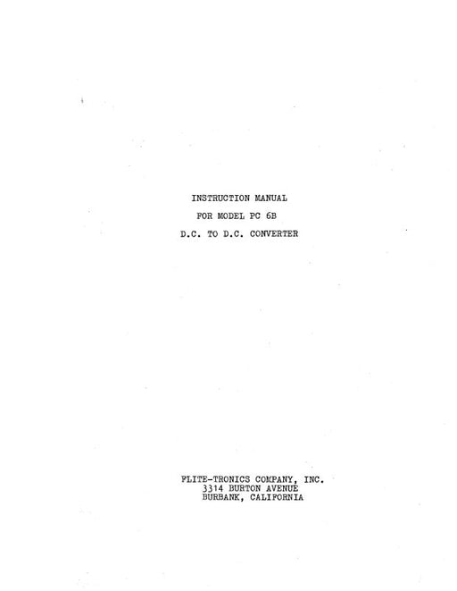 $17.00| /Flite-Tronics, Inc. PC-6B D.C To D.C. Converter Instruction Manual 1968 (FNPC6B-IN-C)