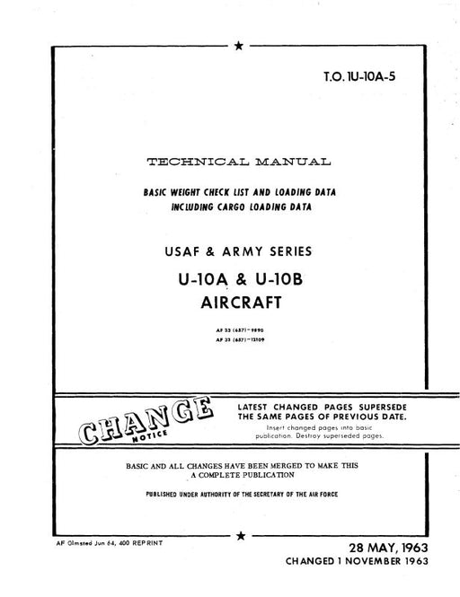 $9.00| /Helio Aircraft Corporation U-10A, B USAF & Army 1963 Basic Weight Checklist & Loading Data (1U-10A-5)