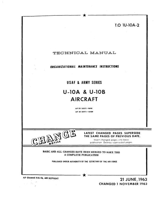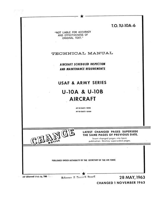 $17.00| /Helio Aircraft Corporation U-10A, B USAF & Army 1963 Inspection & Maintenance Requirements (1U-10A-6)