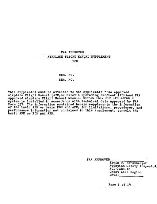 $14.00| /II Morrow Inc 612 Apollo II Loran-C Receiver Flight Manual Supplement (MR612-F-C)