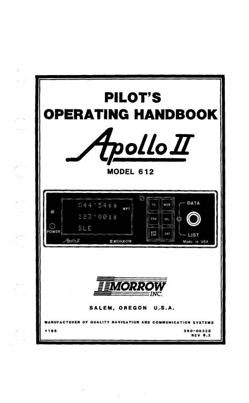 Sale $21.00| /II Morrow Inc Apollo II 612B 1987 Pilot's Operating Handbook (560-0061DREV4.0)
