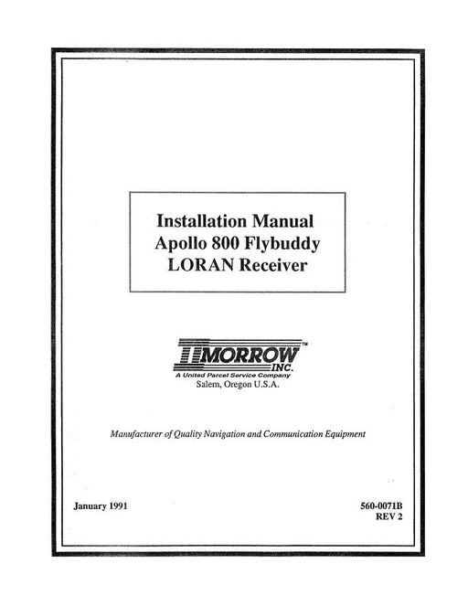 $14.00| /II Morrow Inc Apollo 800 Flybuddy Loran 1991 Installation Manual (560-0071B)