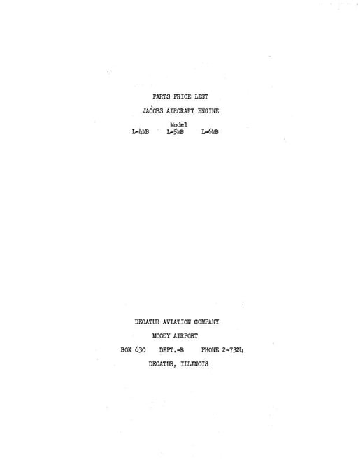 JacobsInstruction Manual with Parts Price List For Models: L-4, L-4M, L-4MB, L-4MA7, L-5, L-5M, L-5MB, L-5MA7, L-6, L-6M, L-6MB, L-6MA