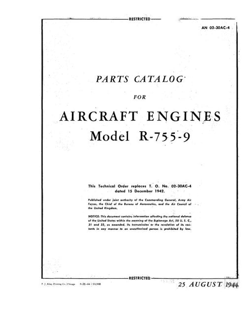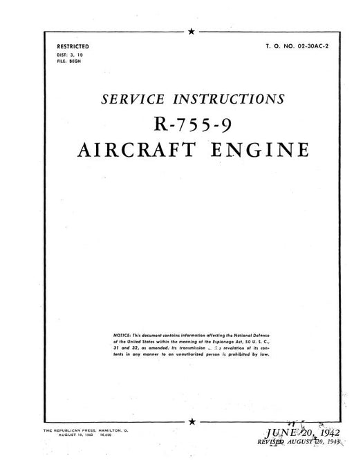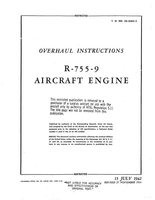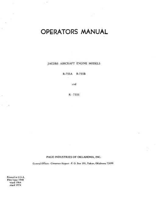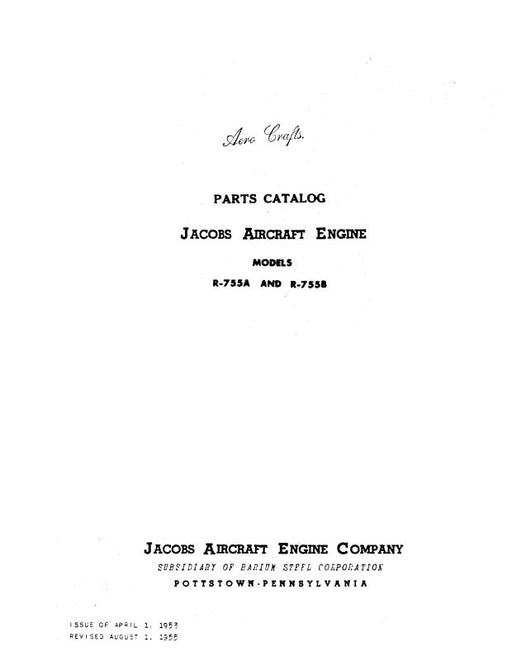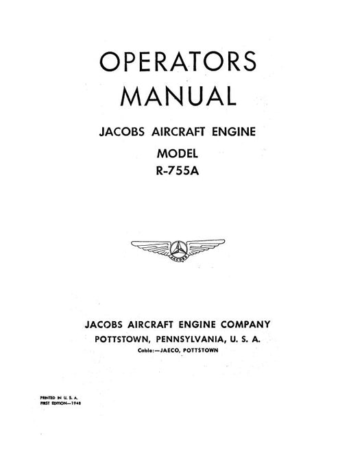 Sale $9.00| /Jacobs R-755 Series Type Certificate Data sheet No. E-237 1973 (E-237)