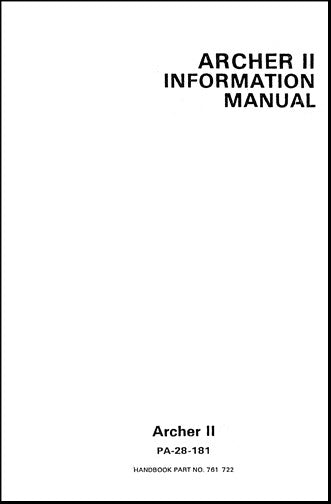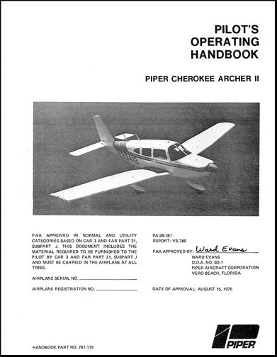 $21.00| /Piper PA28-181 Cherokee Archer II 1976 Pilot's Information Manual (761-619)