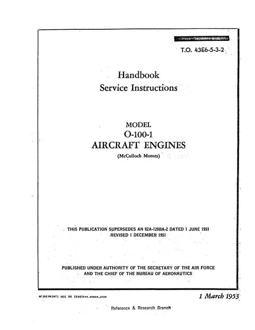 $17.00| /McCulloch Motors O-100-1 Aircraft Engine 1953 Maintenance Instructions (43E6-5-3-2)