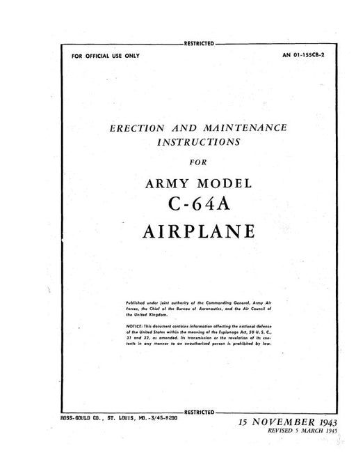 $81.00| /Noorduyn Aviation Norseman C-64A 1943 Erection & Maintenance Instructions (01-155CB-2)