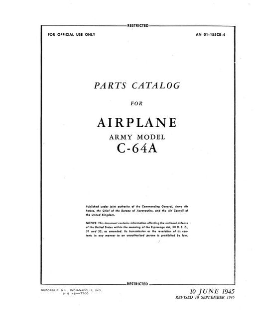 $81.00| /Noorduyn Aviation Norseman C-64A 1945 Parts Catalog & Basic Weight Checklist and Loading Data (01-155CB-4, -5)