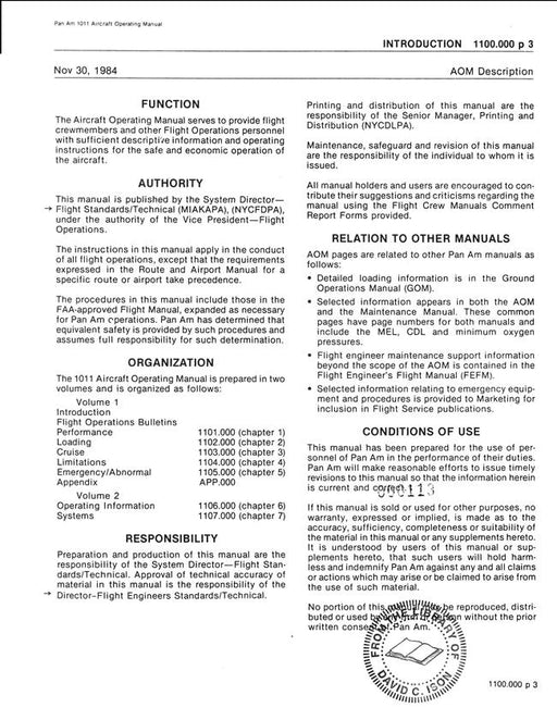 $144.00| /Pan AM L-1011 Aircraft Operating Manual (2 Vols) (L-1011)