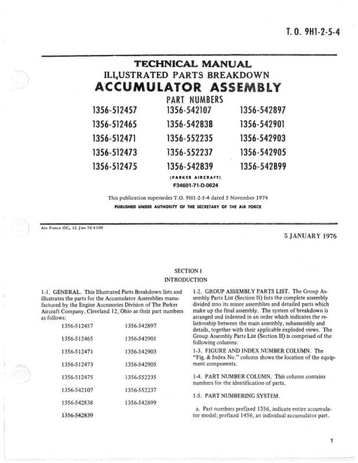 Parker AircraftPart #'s 1356-512457 thru 1356-542899 F34601-71-D-0624