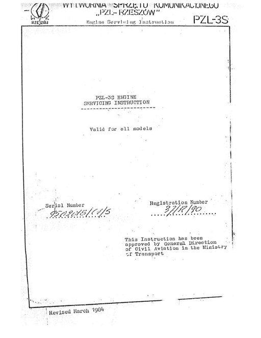 Sale $29.00| /Polish Engine PZL-3S 1984 Aircraft Engines Engine Operating Instruction (PPPZL3S-84-OP-C)