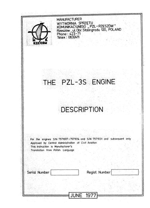 $35.00| /Polish Engine PZL-3S 1977 Aircraft Engines Description (PPPZL3S-77-DESC-C)