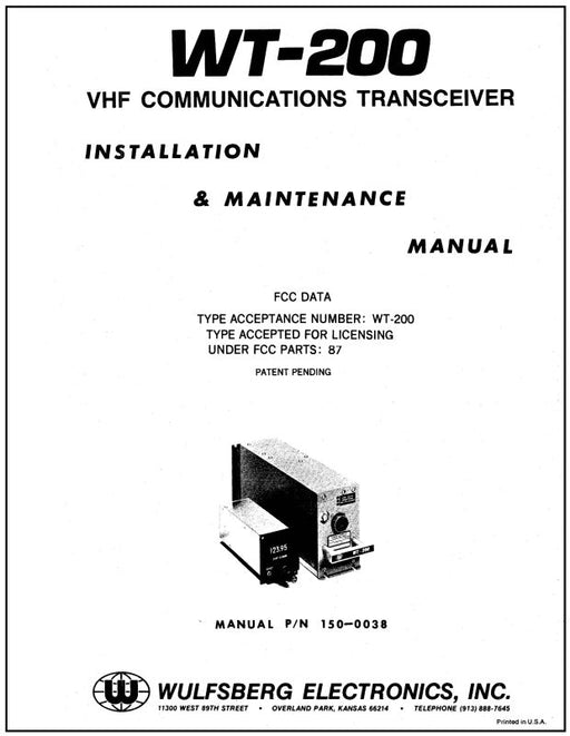 Wulfsberg Electronics, Inc. WT-200 VHF Comm. Transceiver Maintenance and Installation (150-0038)